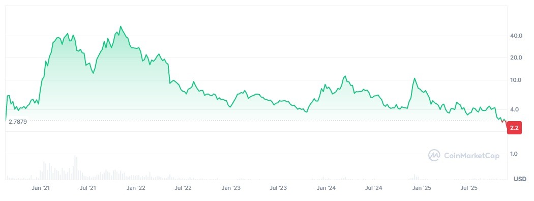 Polkadot remains one of the most technically ambitious projects in the blockchain space. Its architecture was designed to position Polkadot as the scalable “internet of blockchains.” However, despite strong engineering fundamentals and active developer communities, DOT’s market performance since 2021 has faced persistent challenges. Much of this stems from limited token demand at the base layer, fragmentation of liquidity across parachains, and intense competition from Ethereum L2s, Cosmos, and high-throughput monolithic chains like Solana.