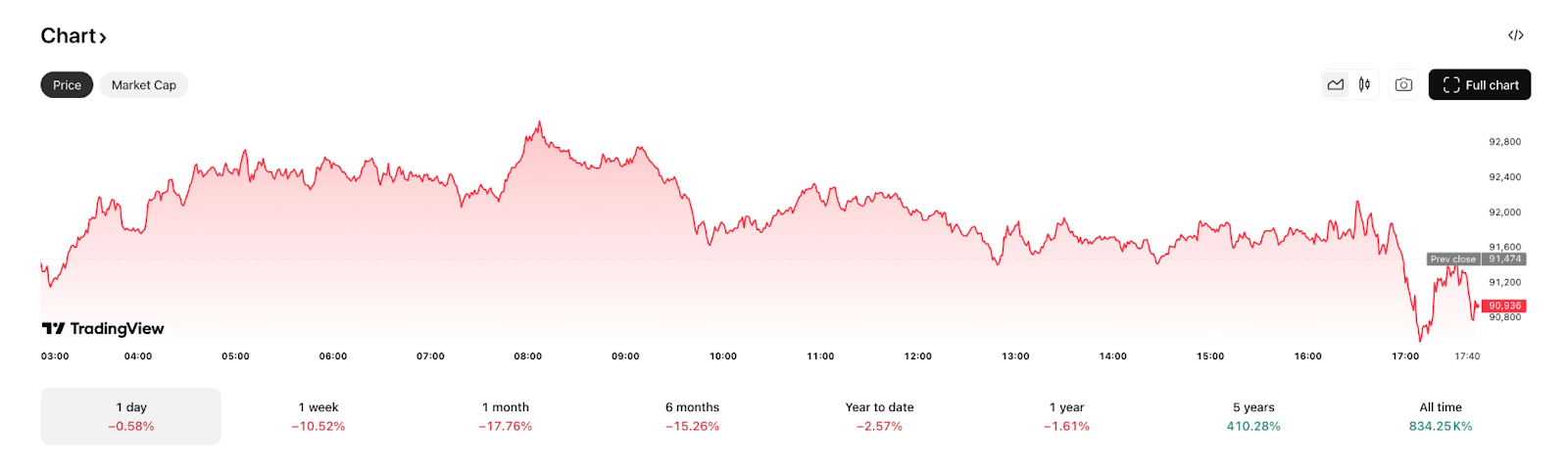 Die Frage, ob Bitcoin steigen wird, hängt von mehreren miteinander verbundenen Faktoren ab. Historisch hat Bitcoin eine bemerkenswerte Widerstandsfähigkeit gezeigt und zahlreiche Herausforderungen überwunden, um neue Höchststände zu erreichen. Im November 2025, nachdem es im Oktober ein neues Rekordniveau von 126 073 $ erreicht hatte, durchläuft Bitcoin eine signifikante Korrekturphase um 90 800-91 600 $, was einem Rückgang von über 27% vom Höchststand entspricht.