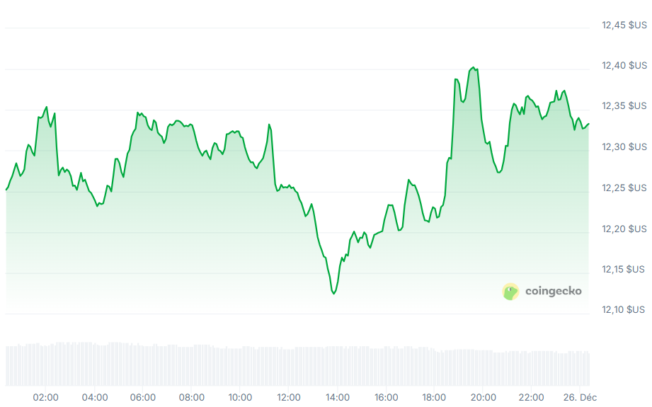 Der aktuelle Chainlink-Kurs liegt bei 12,112-12,410 USD (Stand: 25. Dezember 2025), mit einer Marktkapitalisierung von 8,77-9,02 Milliarden USD. Nach einem schwierigen Jahr 2025 mit einer Performance von -40% zeigt LINK nun Anzeichen einer technischen Stabilisierung. Der RSI liegt bei neutralen 40,3, was auf eine mögliche Erholung nach der überverkauften Phase hindeutet. Die 24h-Veränderung beträgt +1,72% bis +3,69%, was auf erneutes Kaufinteresse schließen lässt.