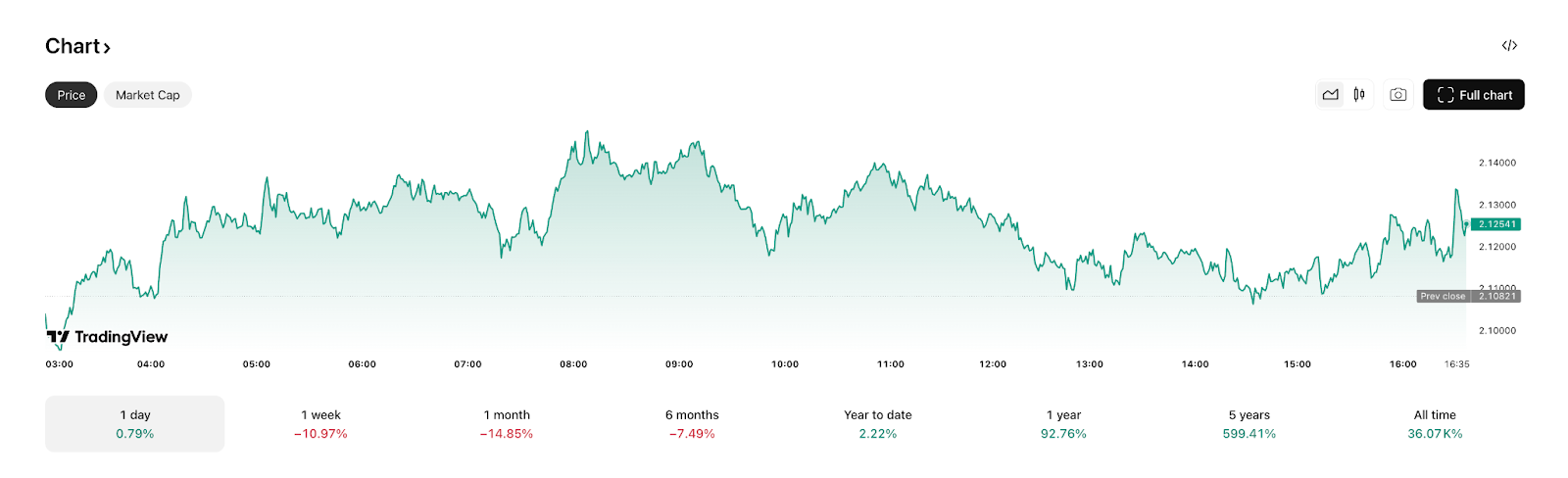 Wichtige technische Niveaus: Unterstützungen bei 2,00-2,10 $, 1,95 $ und 1,80 $; Widerstände bei 2,35 $, 2,60 $ und 2,90 $. Ein bestätigter Durchbruch über 2,35 $ wäre das erste Stärkesignal.