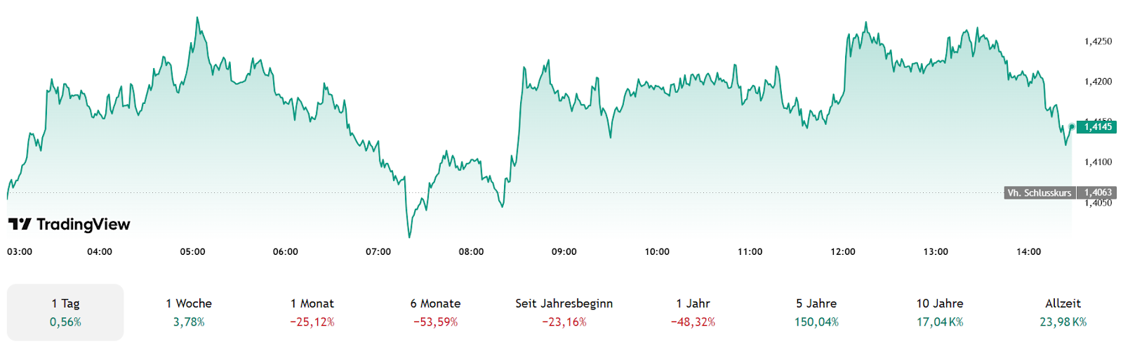 | Aktueller Preis | ~1,38–1,42 € (~1,39–1,42 $) |