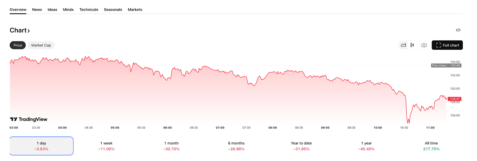 Auf Chart-Ebene oszilliert der Preis derzeit zwischen wichtigen Unterstützungsniveaus bei 130 USD, 120 USD und 110 USD, während die Widerstände bei 150 USD, 165 USD, 178 USD und 185 USD liegen. Ein entscheidender Durchbruch über 150-165 USD könnte die bullische Dynamik zu einem Retest der 178-200 USD-Niveaus wieder ankurbeln.