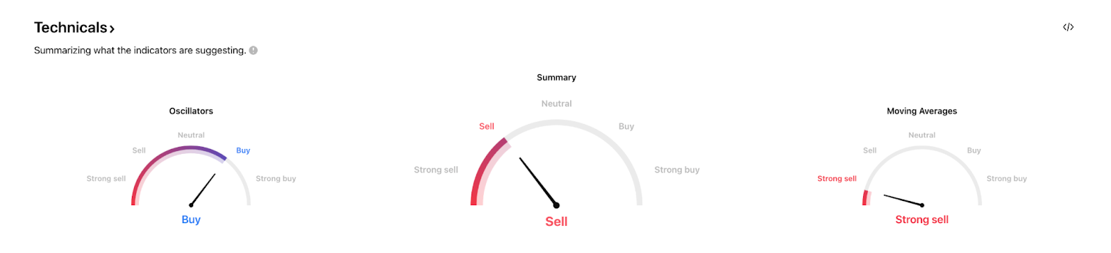 Das allgemeine technische Gesamtsignal der Indikatoren ergibt ein Verkaufssignal (Sell), was den Vorrang des Verkaufsdrucks trotz der kurzfristigen Erholungssignale der Oszillatoren widerspiegelt.