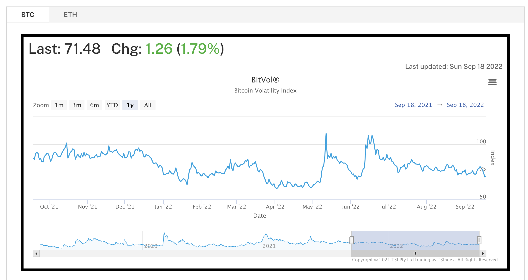 The BitVol Index and EthVol Index provide measurements of the expected 30-day volatility of bitcoin and Ethereum respectively. They are both derived from historical data on their tradeable options. The fear gauge shows data from 2020 onwards and can be used to analyze trends in crypto prices.