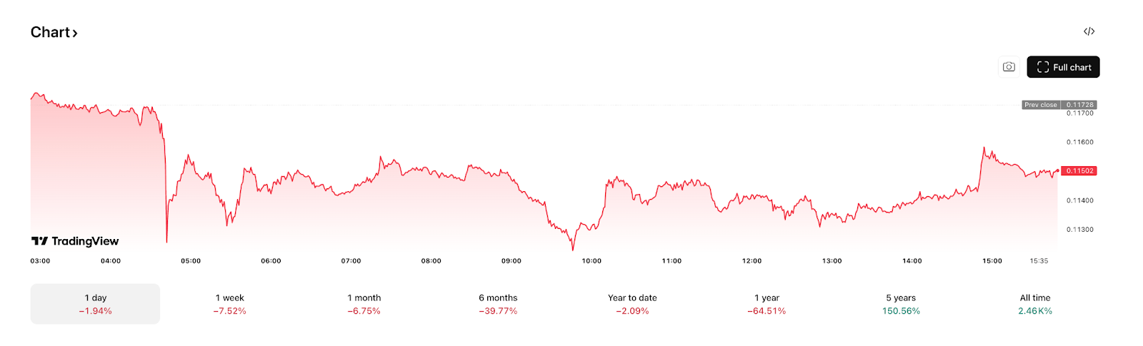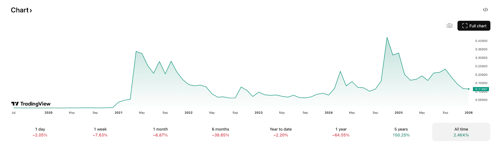 | Prix actuel | 0,107–0,113 € (0,112–0,118 $) |