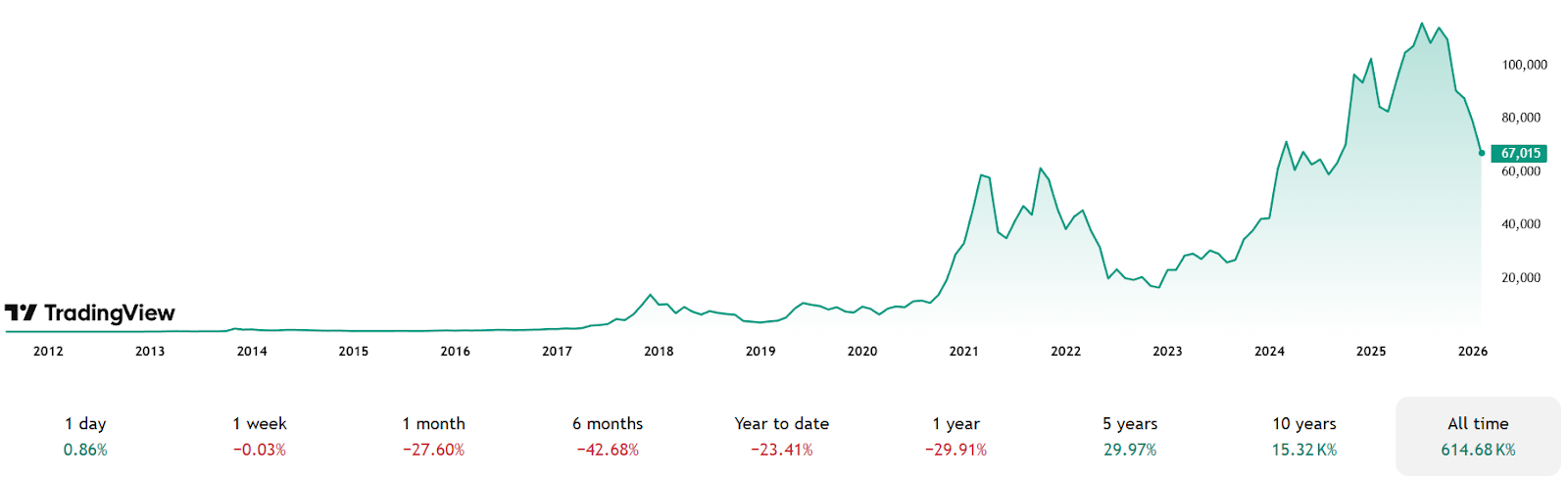 Prévision Bitcoin 2026 : Cours BTC à 65 710–67 270 $ – Analyse Technique et Prévisions 2027-2030