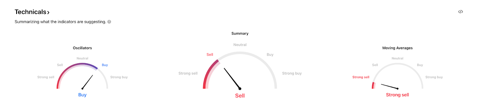 Le résumé général des indicateurs donne un signal Sell, reflétant la prédominance de la pression vendeuse malgré les signaux de rebond à court terme des oscillateurs.